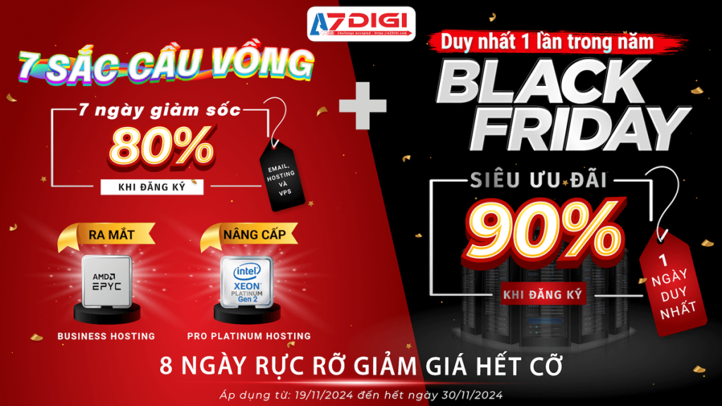 Azdigi.com vừa công bố sự kiện Black Friday 2024, chương trình khuyến mãi lớn nhất năm, diễn ra từ 19/11/2024 đến hết 30/11/2024. Đây là cơ hội không thể bỏ lỡ để bạn sở hữu các dịch vụ hosting chất lượng với mức giá ưu đãi đặc biệt. Thời gian và chi tiết khuyến mãi